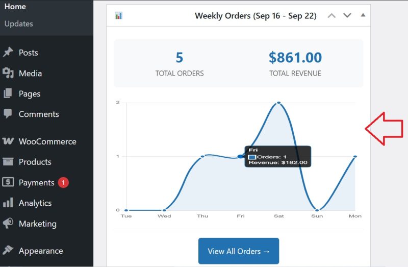 This simple widget adds a clean weekly orders chart to your WordPress dashboard. It shows the last 7 days of order data with a line chart, summary statistics, and quick…